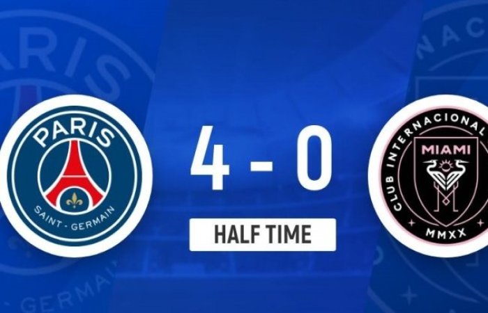 上半場(chǎng)比賽結(jié)束,巴黎圣日耳曼暫時(shí)4-0領(lǐng)先邁阿密國際。