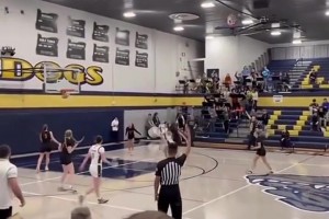 男孩投籃一直沒進,突發(fā)奇想跟暗戀的女孩打賭