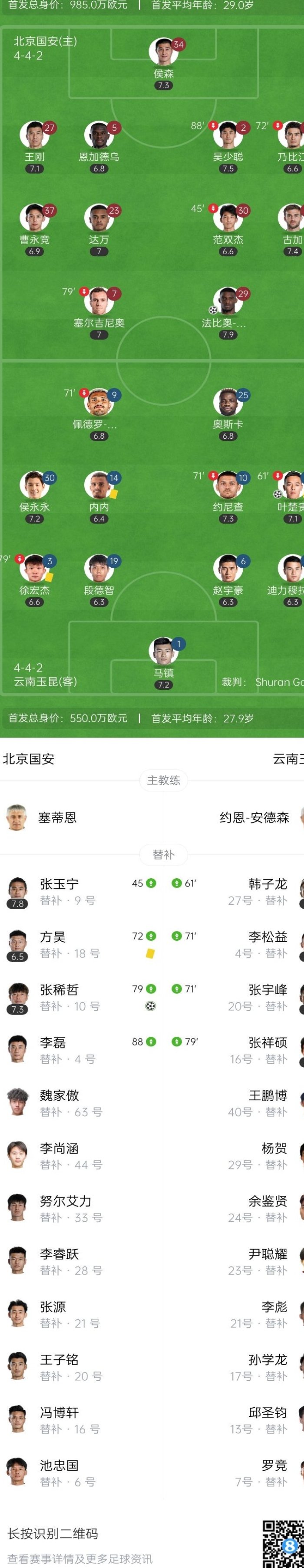 第81分鐘,張玉寧禁區(qū)內(nèi)倒地,主裁判判罰點球!張稀哲主罰點球命中!北京國安2-1反超云南玉昆↓